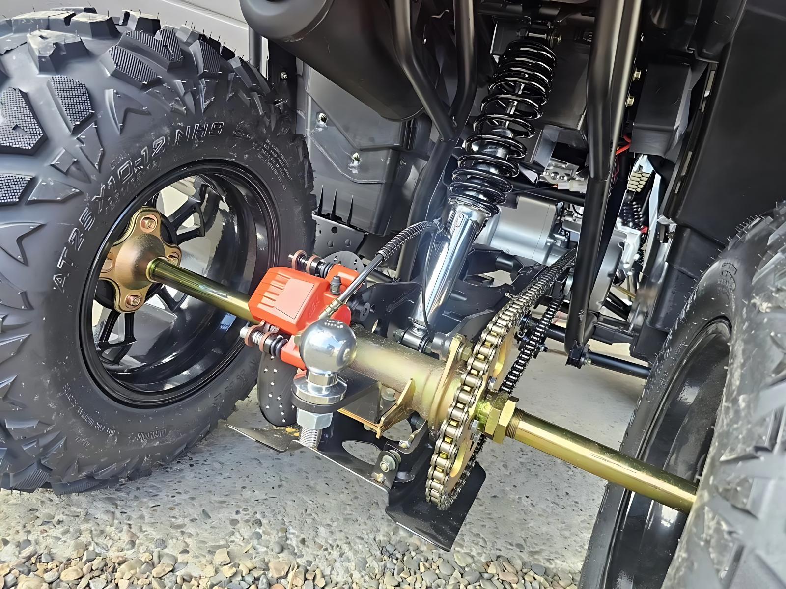 - Тормоз задний: Ножной, гидравлический дисковый